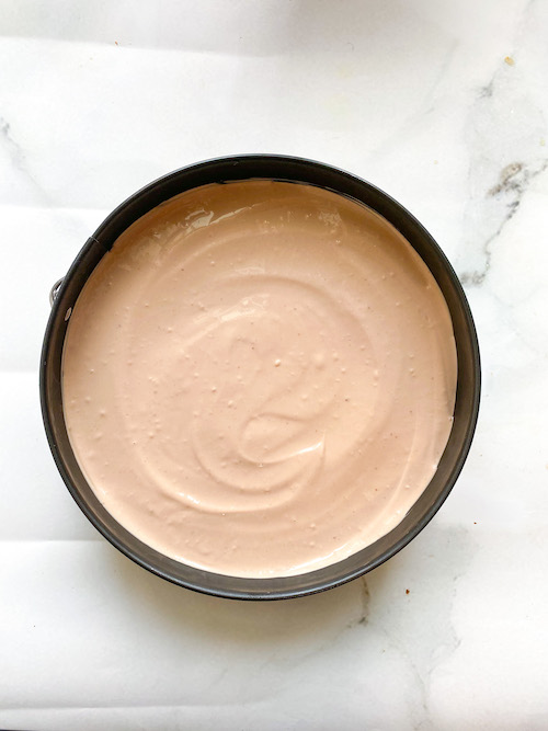 Versate i biscotti in una tortiera a cerniera da 22 o 24 cm e livellate con il dorso di un cucchiaio.
