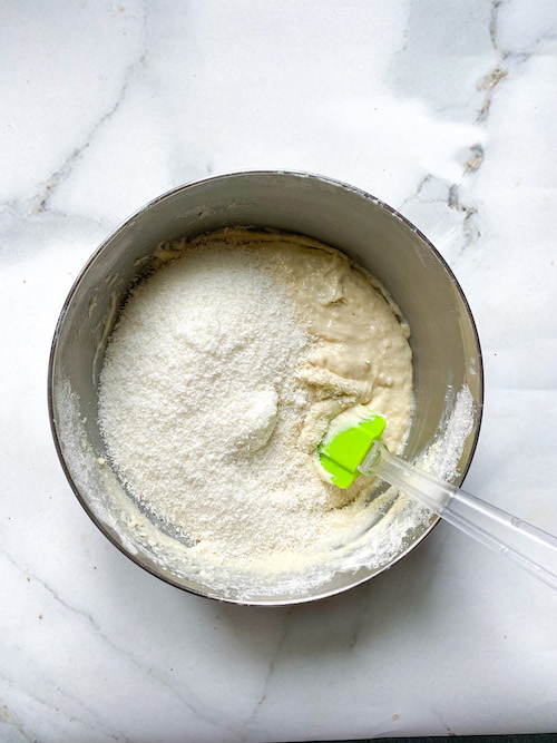Unite poi il cocco rapè e amalgamate bene con una spatola.